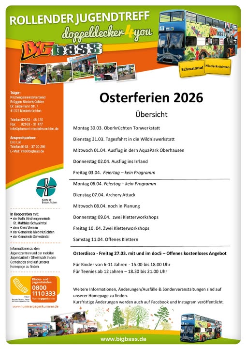 Weitere Informationen erhaltet ihr auf dem Anmeldeflyer der im BIG bass oder bei der mobilen Jugendarbeit/Streetwork - Joachim Hambücher zu erhalten ist.